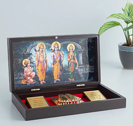 - The Box consists of an engraved artdepicting a Ram Darbar in intricate detail wrapped in 24 Carat Gold Foil