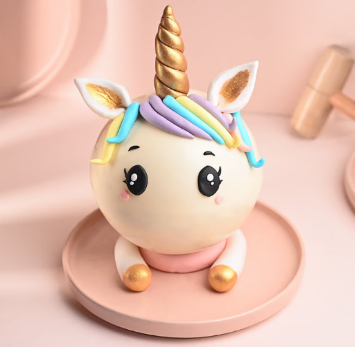 Step into a world of wonder with this adorable Unicorn Pinata Cake;a magical delight for any celebration. Crafted with love;its outer shell is a vivid representation of a unicorn;having beautiful hues and irresistible cuteness. The cake comes with a wooden hammer;ready for you to crack open and unveil the hidden surprise inside – your favourite flavoured cake! Perfect for adding a touch of enchantment to any occasion;this cake is not just a treat but an unforgettable experience.