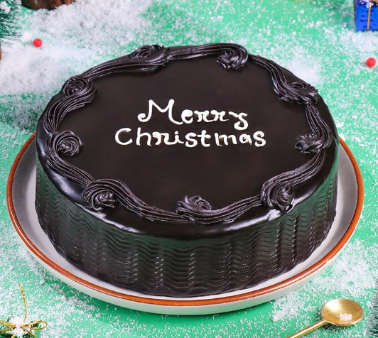 Indulge in the ultimate festive delight with this delicious chocolate cake! Cloaked in a glossy chocolate glaze, this Christmas cake is a perfect blend of sophistication and decadence, offering a melt-in-the-mouth experience with every bite. Elegantly adorned with chocolate piping and a charming “Merry Christmas” message in white icing, it radiates festive cheer. The deep, indulgent cocoa flavour makes it a show-stopping treat for any holiday celebration. Perfect for sharing with loved ones, this masterpiece is sure to add sweetness and joy to your Christmas festivities!