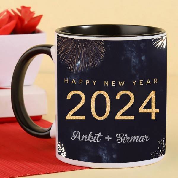 – One Personalised Black Handle Mug For New Year (350ml)