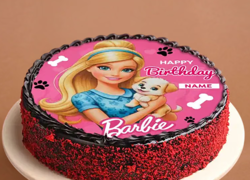 Add a touch of magic to your celebration with this delightful red velvet photo cake featuring Barbie and her cute puppy. The soft, moist layers of red velvet are paired with a rich, creamy frosting, offering a perfect blend of flavour and charm. Customised with your special birthday message, this cake brings a personal and fun twist to the occasion. With Barbie’s vibrant design, it’s sure to be the highlight of any party, making it an unforgettable treat for your little one’s big day!