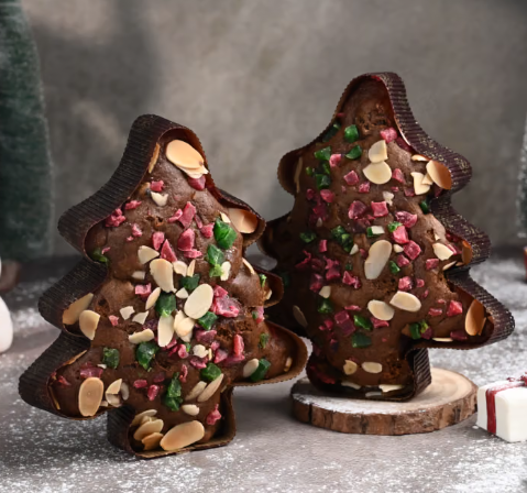 Imitating the joy of a Christmas Tree, we baked for your best Xmas celebration a delicious, moist, and soft Christmas Tree-shaped Plum cake. Every bite of the cake serves you joy through perfect baking and the pinch of finely chopped almonds and sweet candied fruits.
