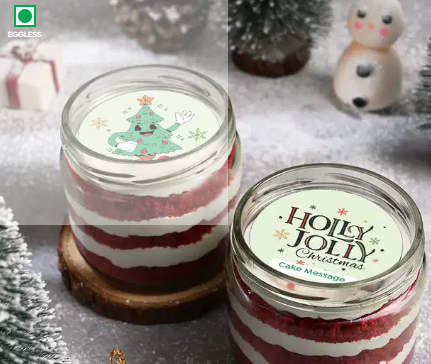 This set of 2 red velvet jar cakes brings holiday cheer with a quirky Christmas tree design and a festive “HOLLY JOLLY” message. The perfect way to spread joy and sweetness this Christmas. Read less